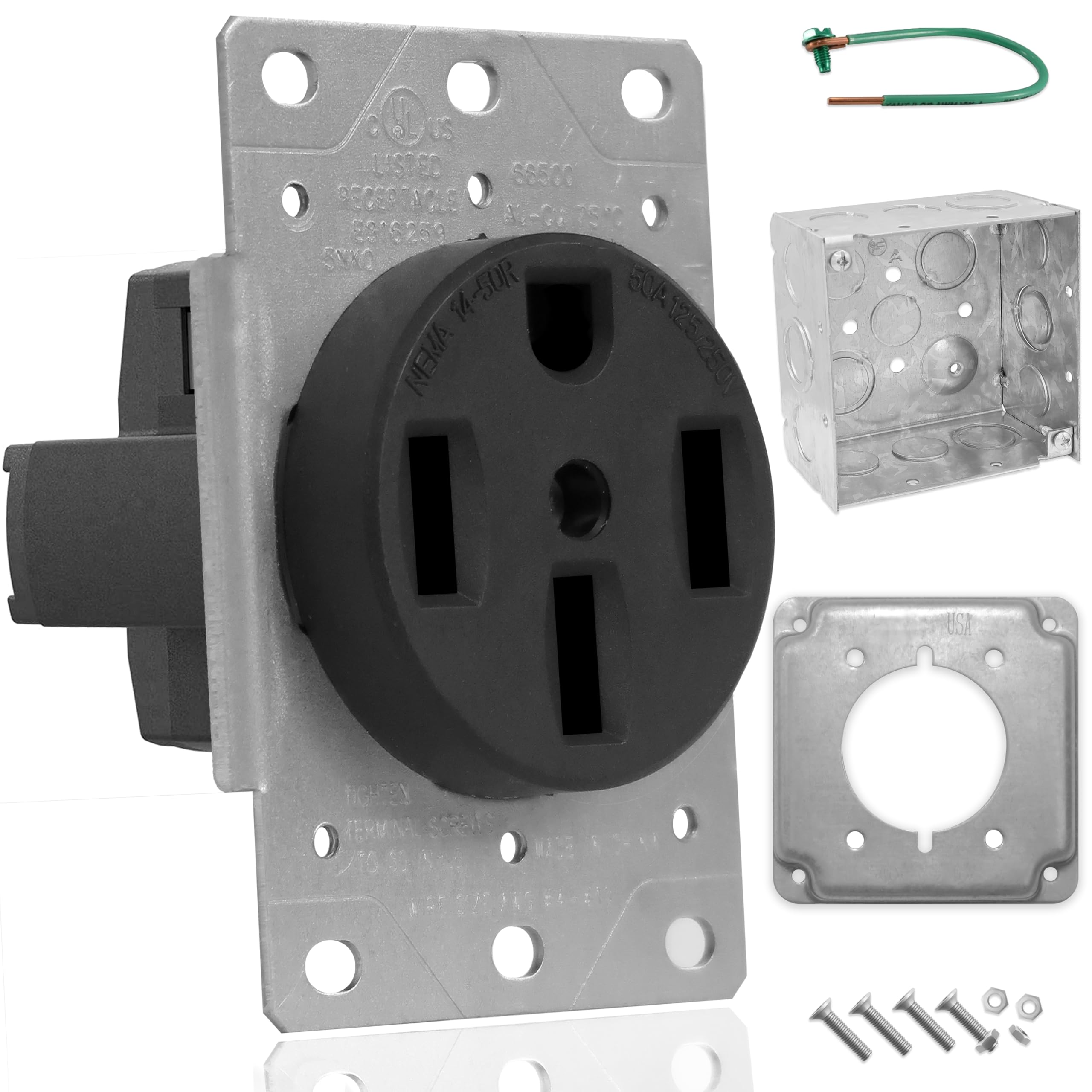 • Metal Cover Plate Included: Sturdy steel cover plate for protection from dust and damage, ensuring a clean, finished look suitable for dryer, EV, or RV outlet installations.