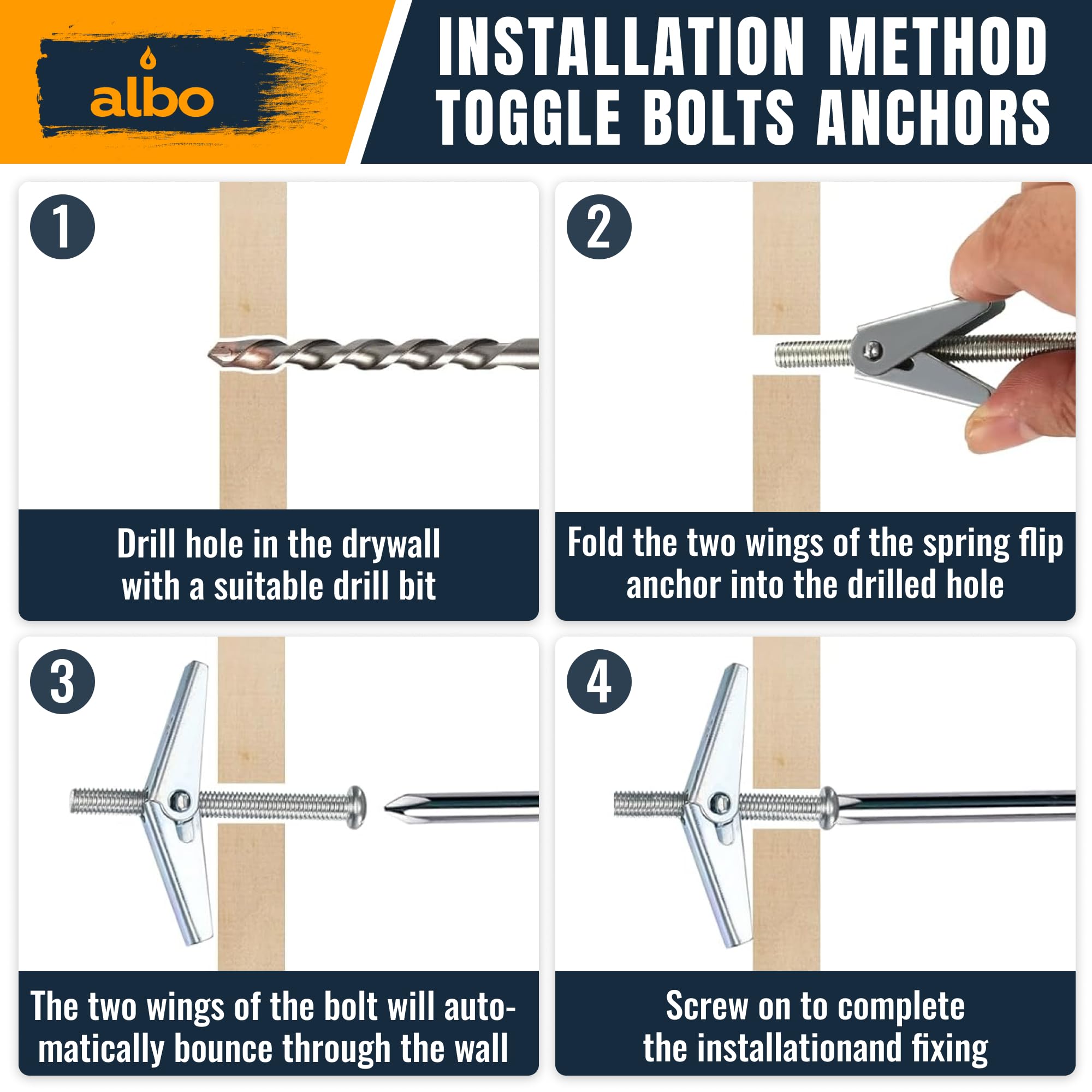 • Multiple Size Selection: Versatile kit with 3 toggle bolt sizes for diverse mounting needs.