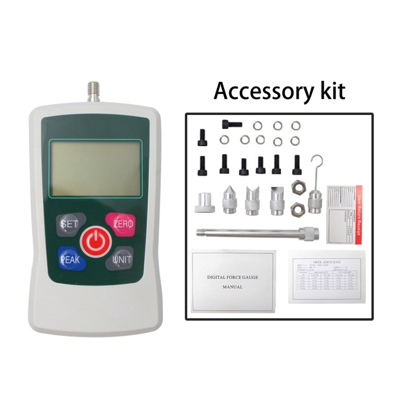 Three measurement modes available: Real-time, Peak, First peak. Choose from 2.3 N, Kg, Lb, or Oz units for accurate readings. Set acceleration for precise testing. Define upper and lower limits for statistical analysis, with alarm function for limit exceedance.