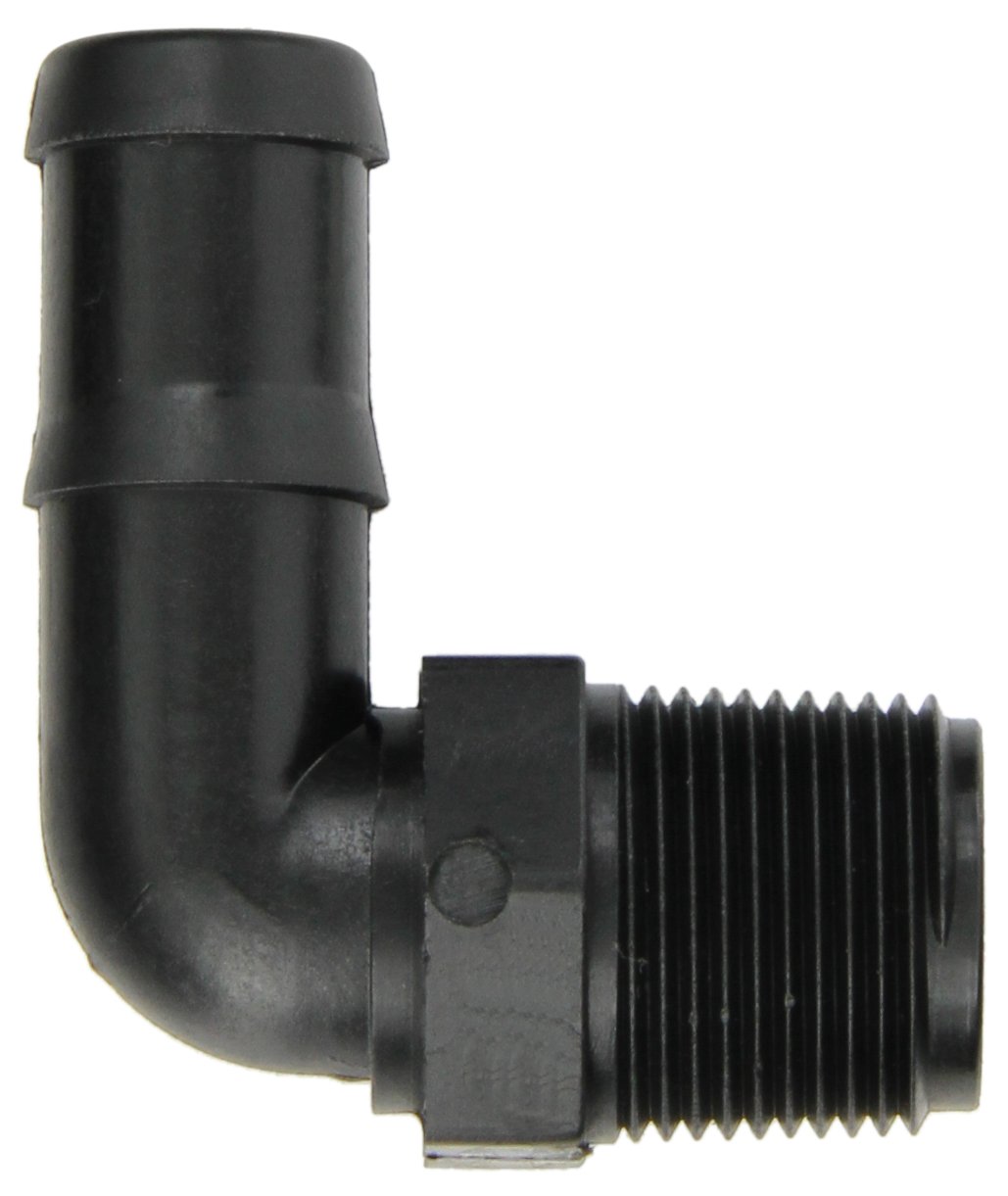 This Banjo barbed hose 90-degree elbow is made of glass-reinforced polypropylene and features a 3/4″ barbed connection on one end and a 3/4″ male NPT threaded connection on the other for connecting tubes or hoses to a female NPT threaded connection at a 90-degree angle. The schedule 80 elbow offers rigidity, lightweight design, dimensional stability, and resistance to high impact, heat, corrosion, and chemicals. It is ideal for agricultural and industrial liquid flow applications.