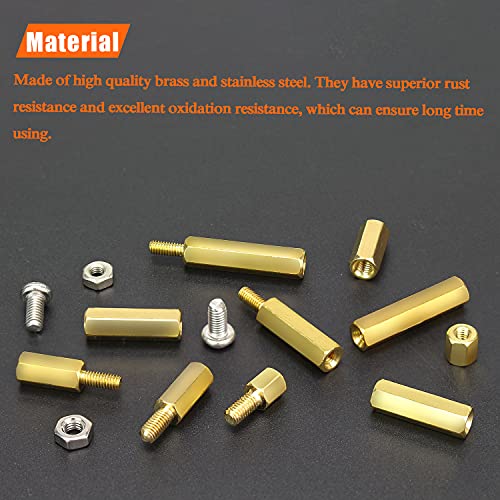 A comprehensive assortment kit of male and female hex brass spacers, standoffs, screws, and nuts for various applications.