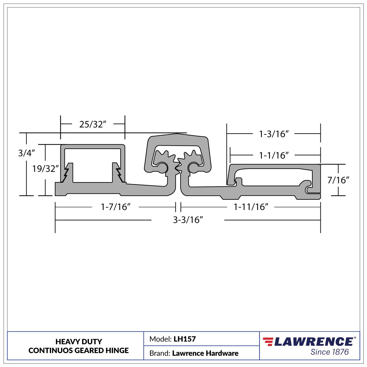Commercial Geared Door Hinge made of Anodized Aluminum, 83-inch length. Heavy-duty design for storefront doors, comparable to Select SL57 LawrenceLH-HD157.