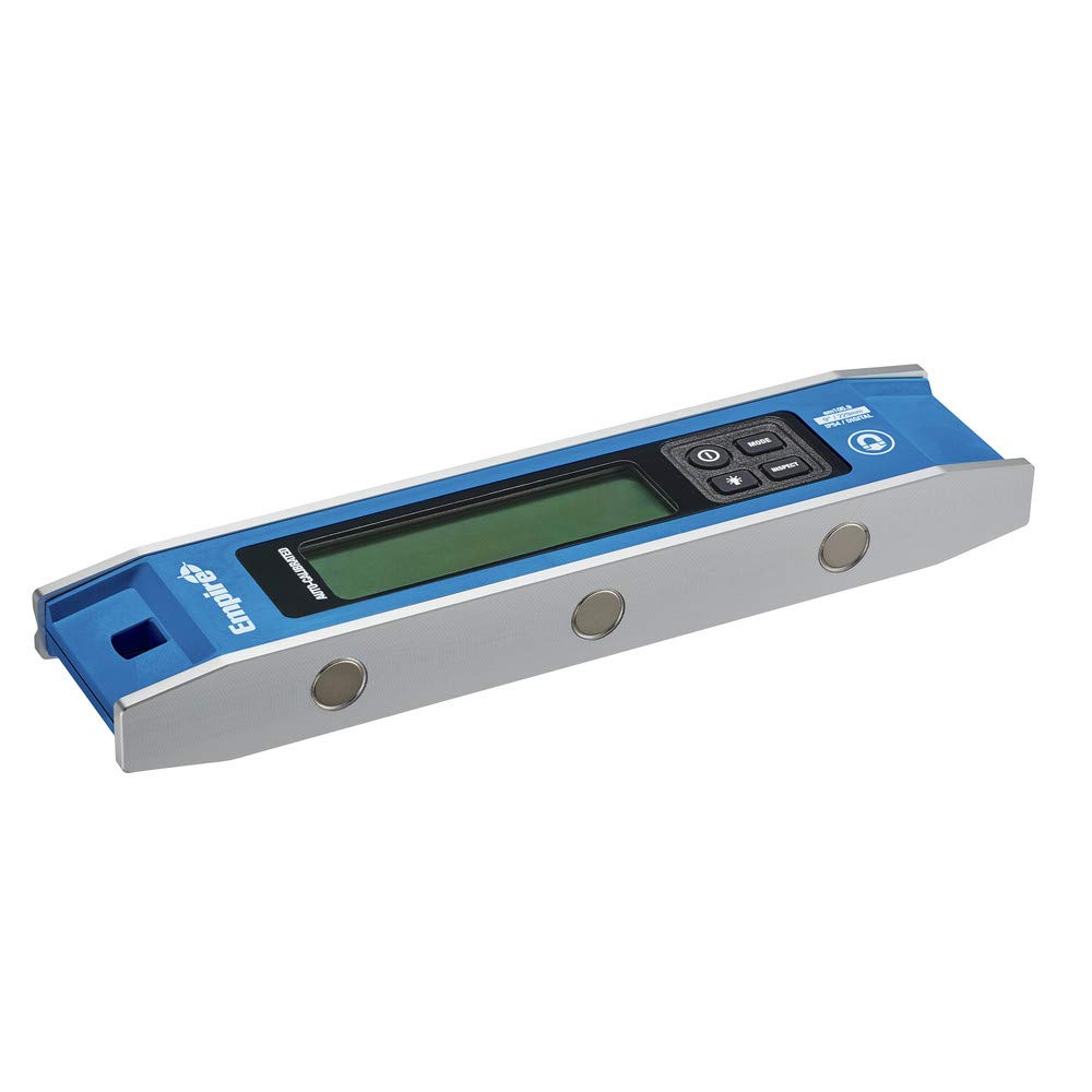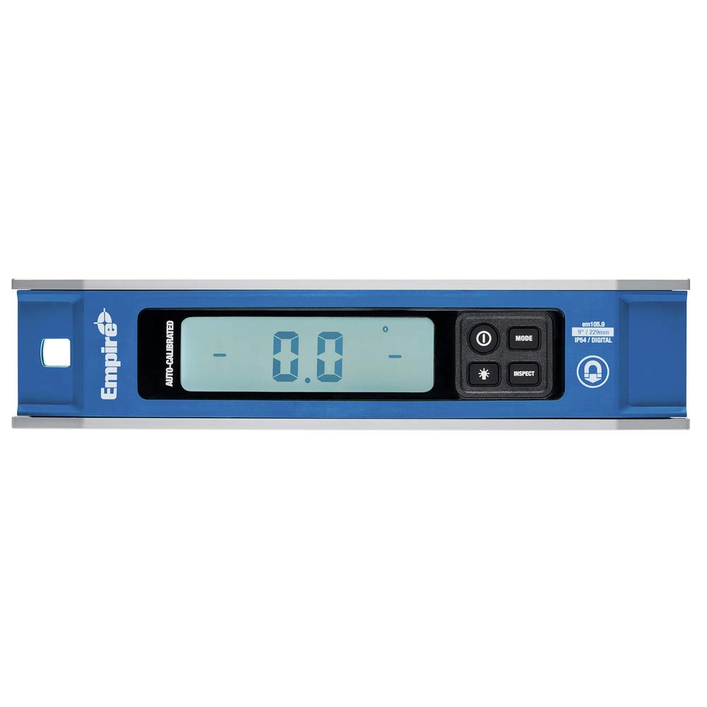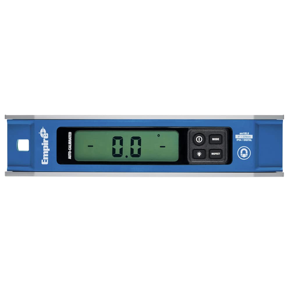 The Empire EM105.9 9″ Magnetic Digital Torpedo Level is designed for precise measurements with auto-calibration, six display modes, and rare earth magnets for easy attachment to metal surfaces. It features degree-tenths, mm/M, and percentage measurements, as well as rough-in mode measurements in degrees and fractions. The inspect mode allows zeroing out for conduit bending applications.