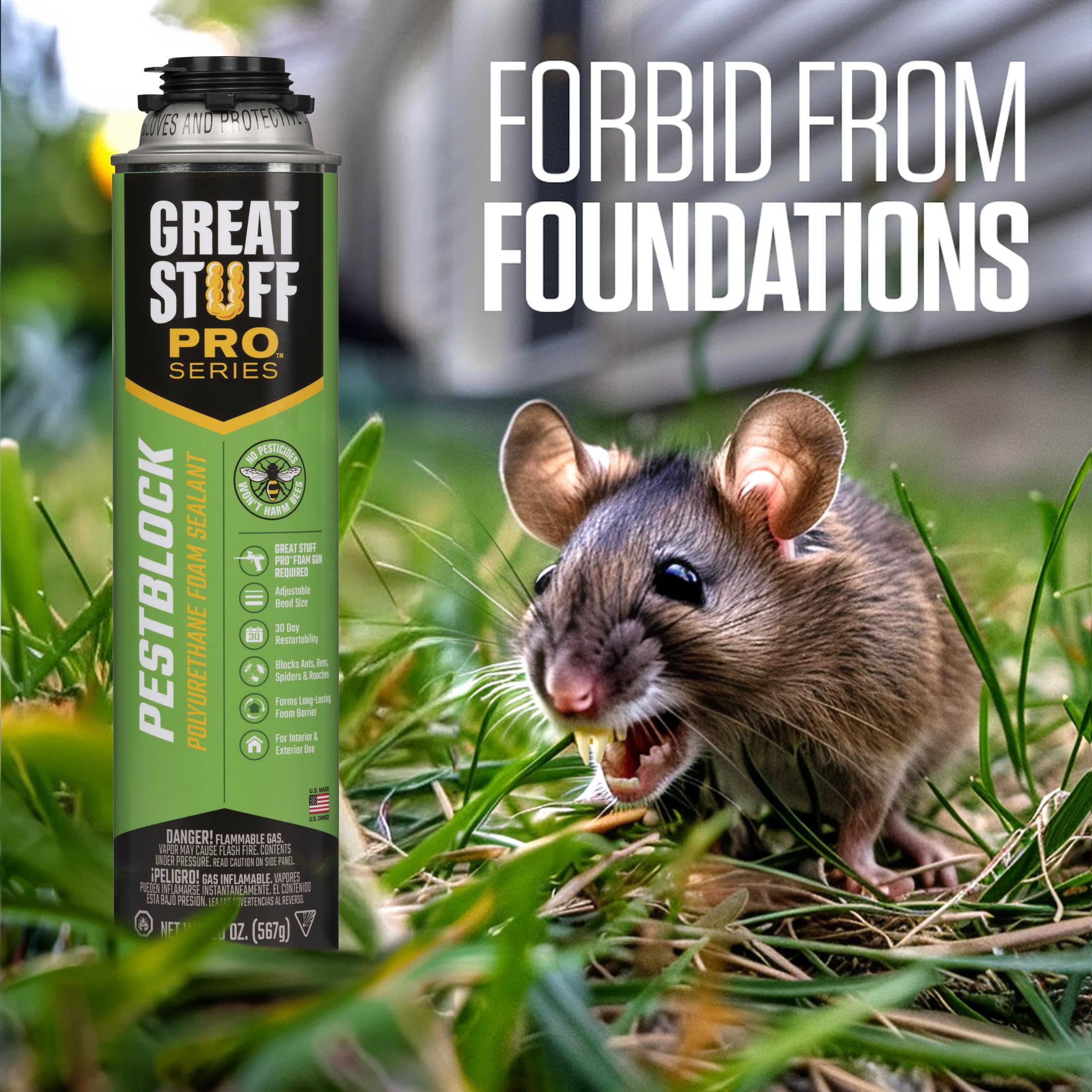 Prevent tiny invaders with Great Stuff Pro PB 20oz Foam Sealant. Seal gaps, cracks, and holes to create a barrier against unwanted intruders. Use Copper Mesh for added protection. Features: Fills, Seals and Insulates gaps up to 3″; Water-Resistant, Airtight Seal; Bonds with most materials; Trimmable, Sandable, Paintable; Tack-Free in 6 minutes; Interior/exterior use; Precise application with no mess; Stores easily for future use.