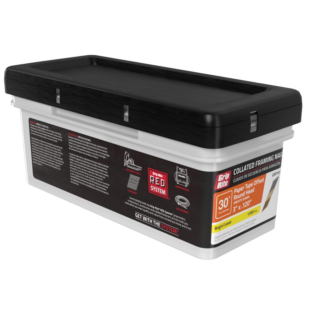 Grip Rite Prime Guard GRP10H1 30 Degree Paper Tape Offset Round Head Bright Coated Collated Framing Nails, 3″ x 0.120″