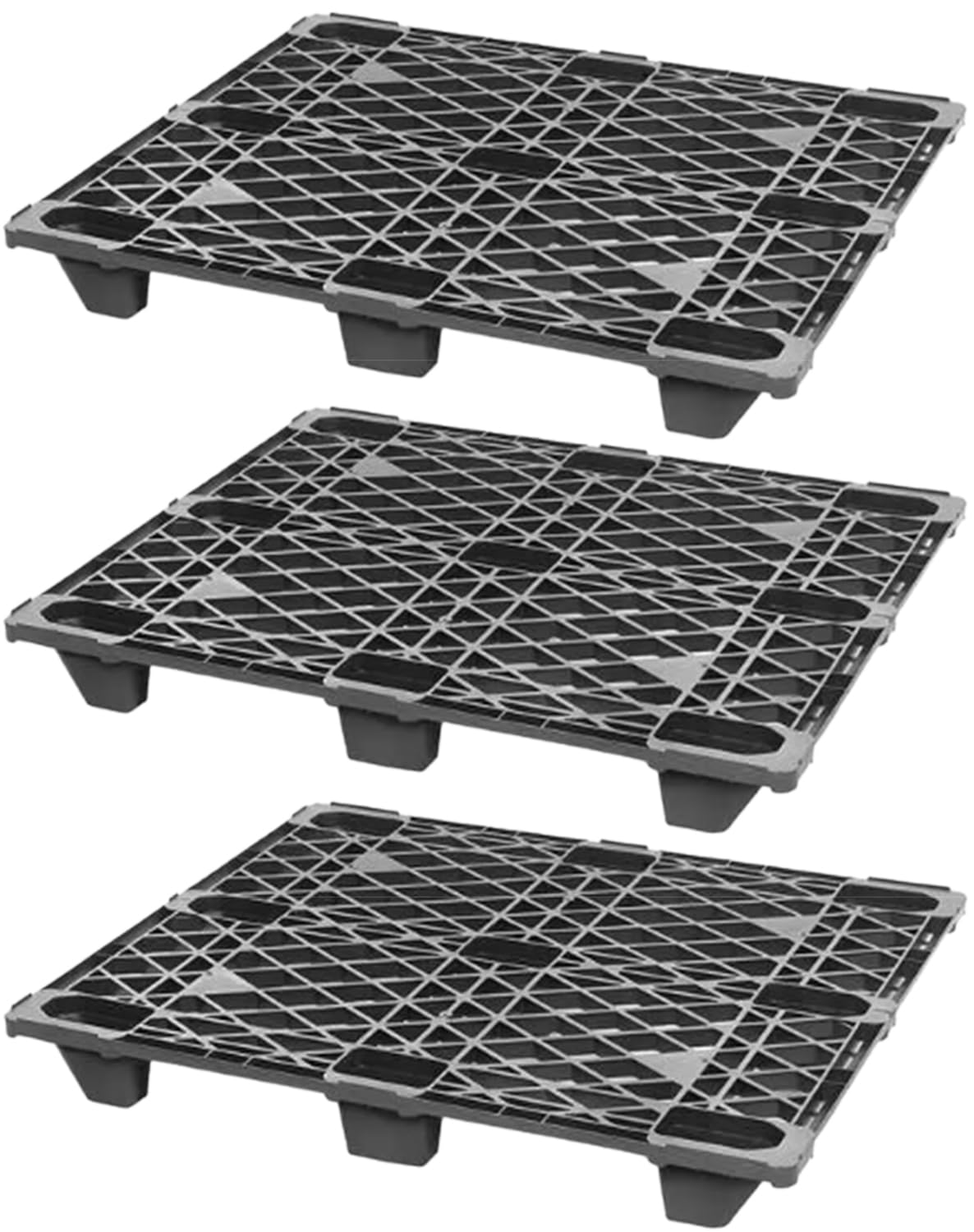 Heavy Duty 48″ L x 40″ W x 5″ H Recycled High Density Polyethylene Pallets with 3,500lb Static Weight Load Capacity Per Pallet.