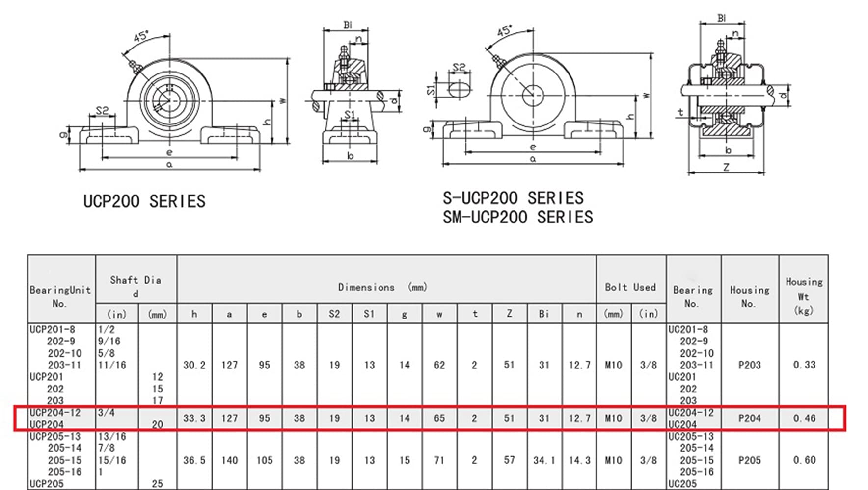 • Design: UCP pillow block series with two-bolt mounting and set screw locking.