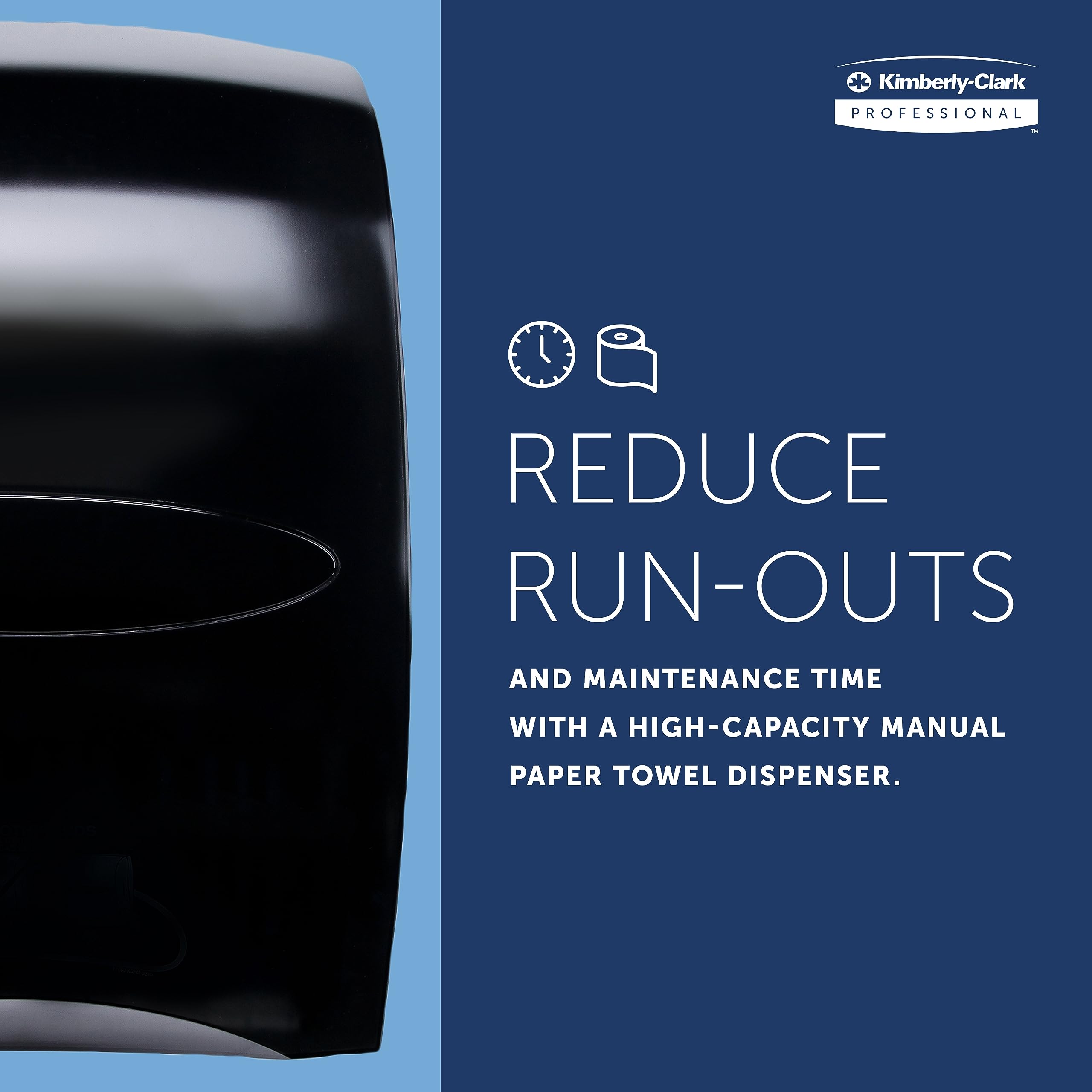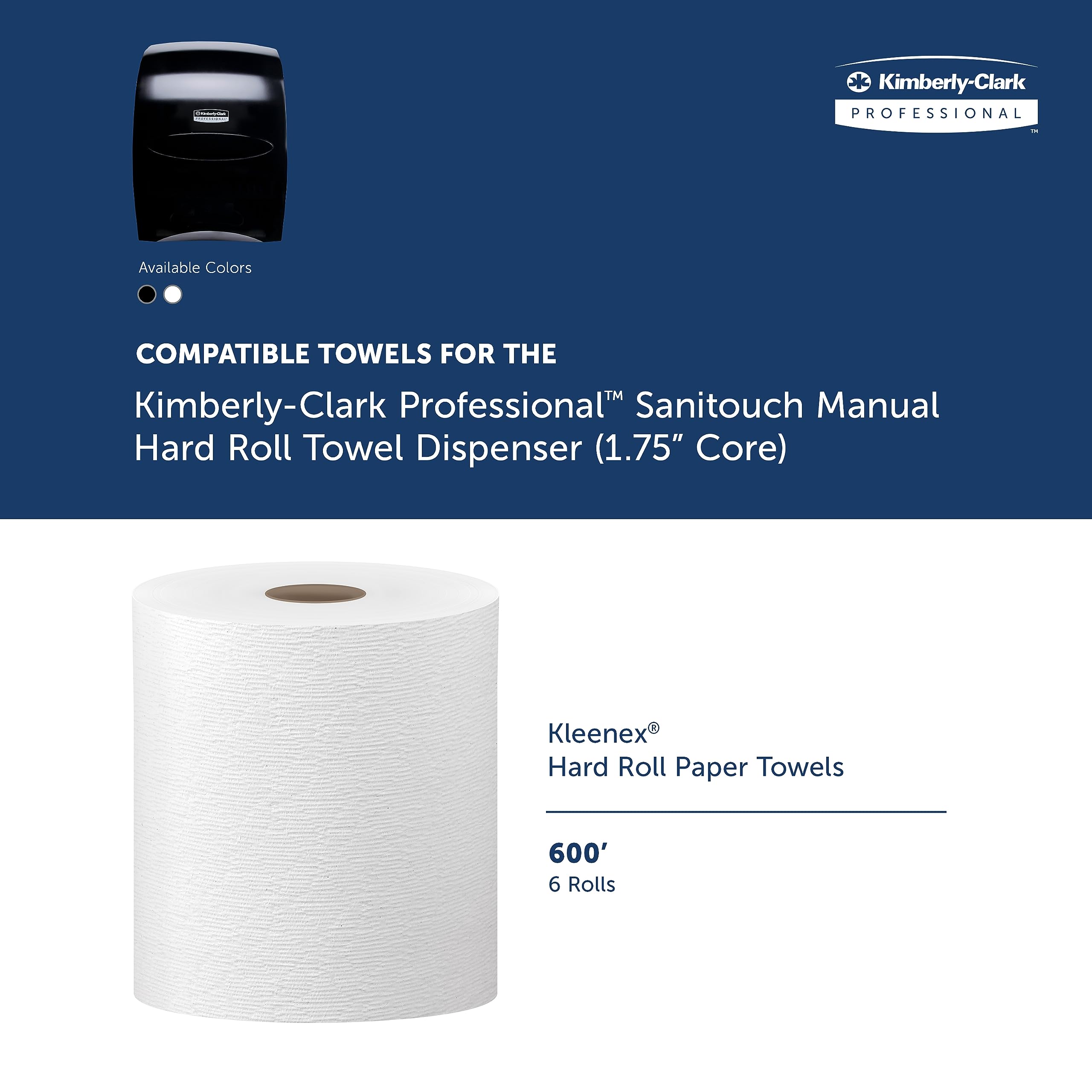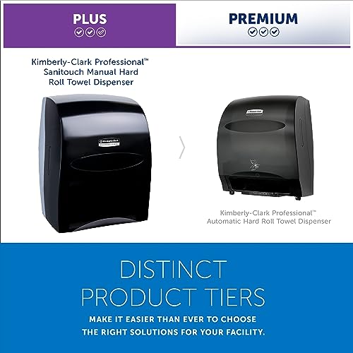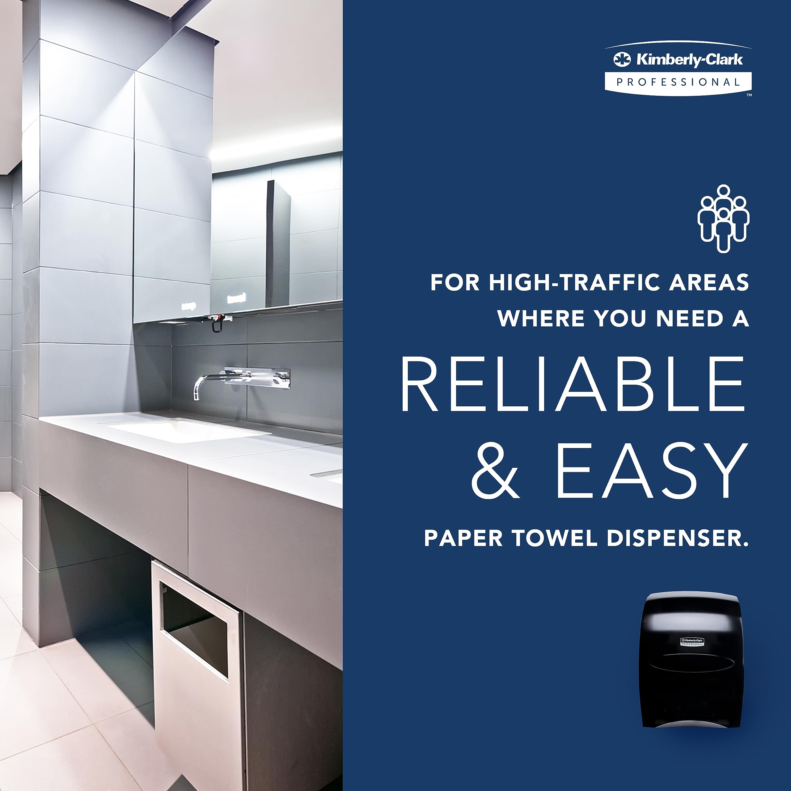 Reduce maintenance time and run-outs with a high-capacity washroom towel system. The Sanitouch Hard Roll Paper Towel Dispenser is a reliable and efficient hand-drying system perfect for workplaces. Ideal for retail, offices, or high-traffic locations, guests will only touch the towel they use, thanks to touch-free, one-at-a-time dispensing. Made of durable plastic in black, this wall-mount dispenser complements any decor. Compatible with Kleenex and Scott Brand Hard Roll towels with a 1.75″ core, providing high-quality towels to increase maintenance efficiency.
