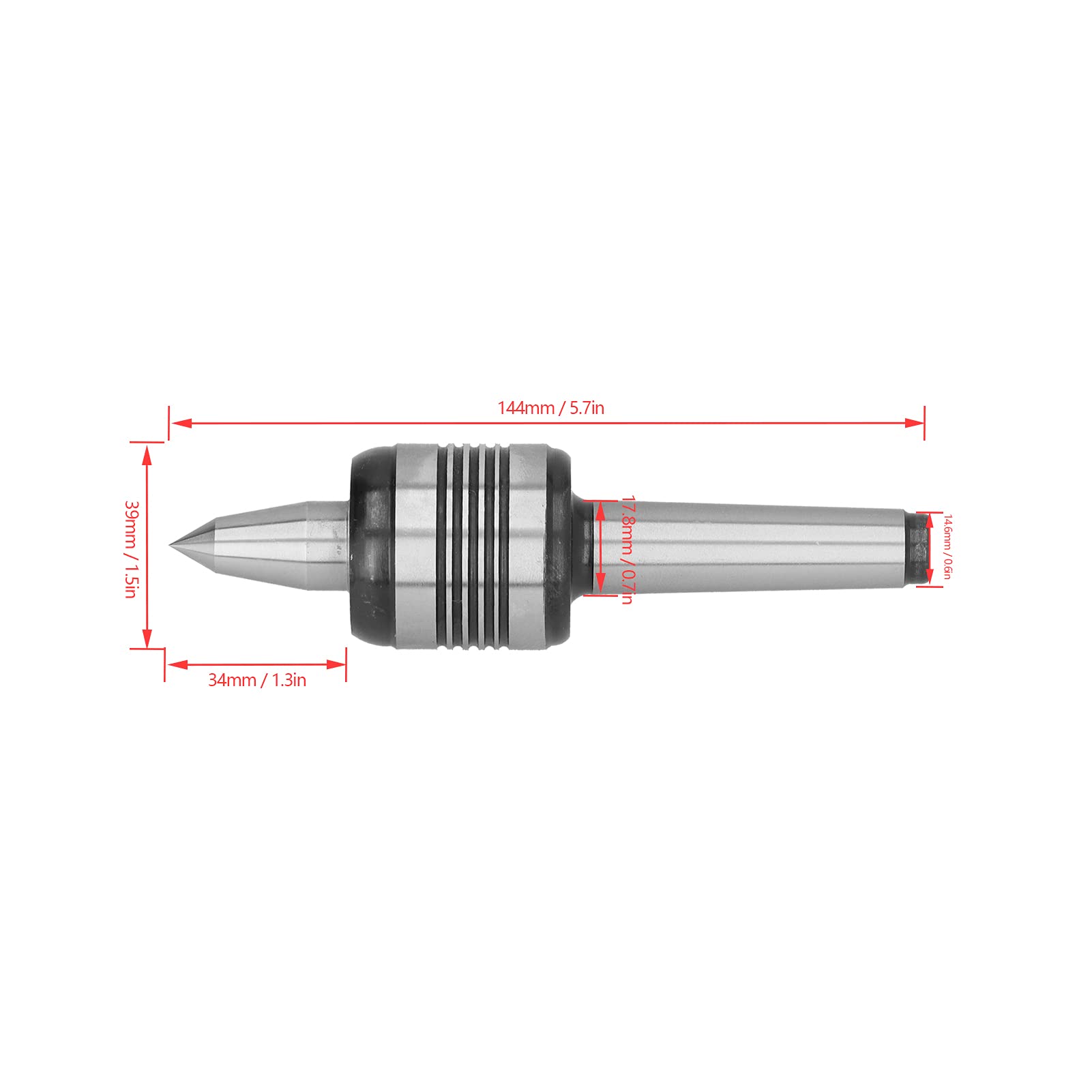 High-Speed Steel Tip – 60° live center is crafted from hardened high-speed steel, delivering exceptional durability and maintaining shape stability through extended robust operations.
