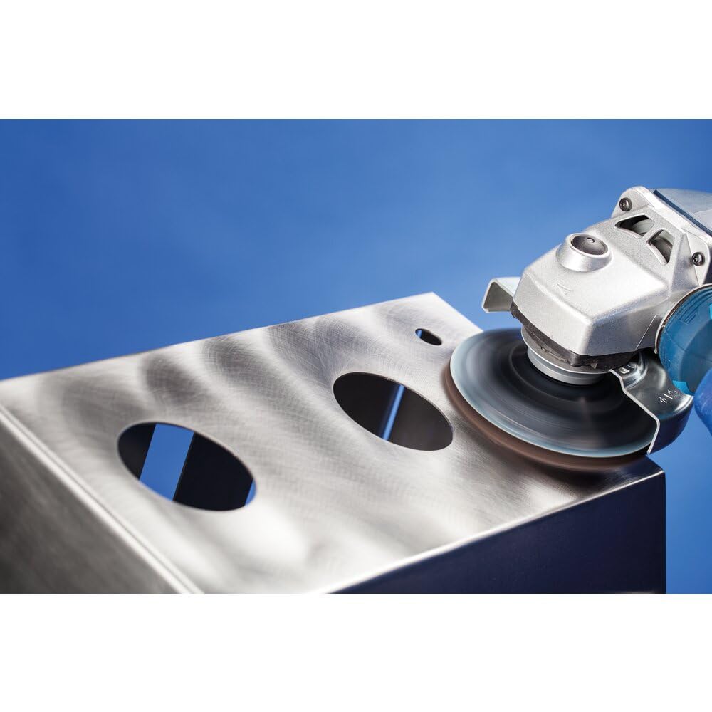 PFERD COMBICLICK® surface finishing discs are ideal for very fine grinding of surfaces and contours, as well as cleaning work on metals and painted surfaces. The open structure and high flexibility of the non-woven material prevents loading of the tool. Choose the soft finishing discs for matt finishing or structuring of components made of stainless steel (in ox), very fine grinding of brass, copper, titanium and aluminum. For best results, use recommended operating speeds. Non-woven soft type discs for very fine grinding of surfaces and contours, as well as cleaning work on metals and painted surfaces. The open structure and high flexibility of the non-woven material prevents clogging of the disc. Specification: Diameter: 5″; Recommended Speed RPM:3,100; Max RPM: 9,650; Grit: Medium.