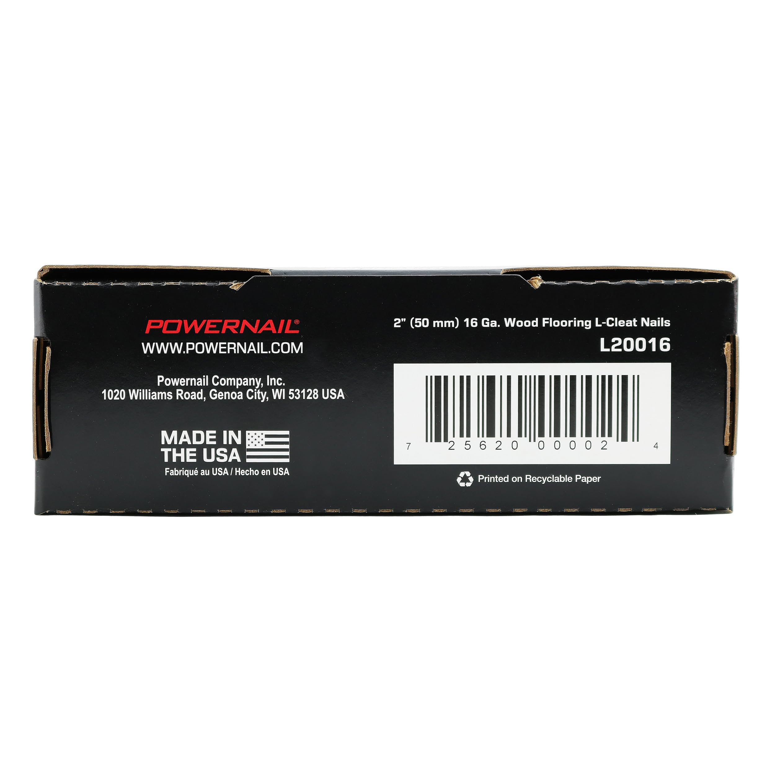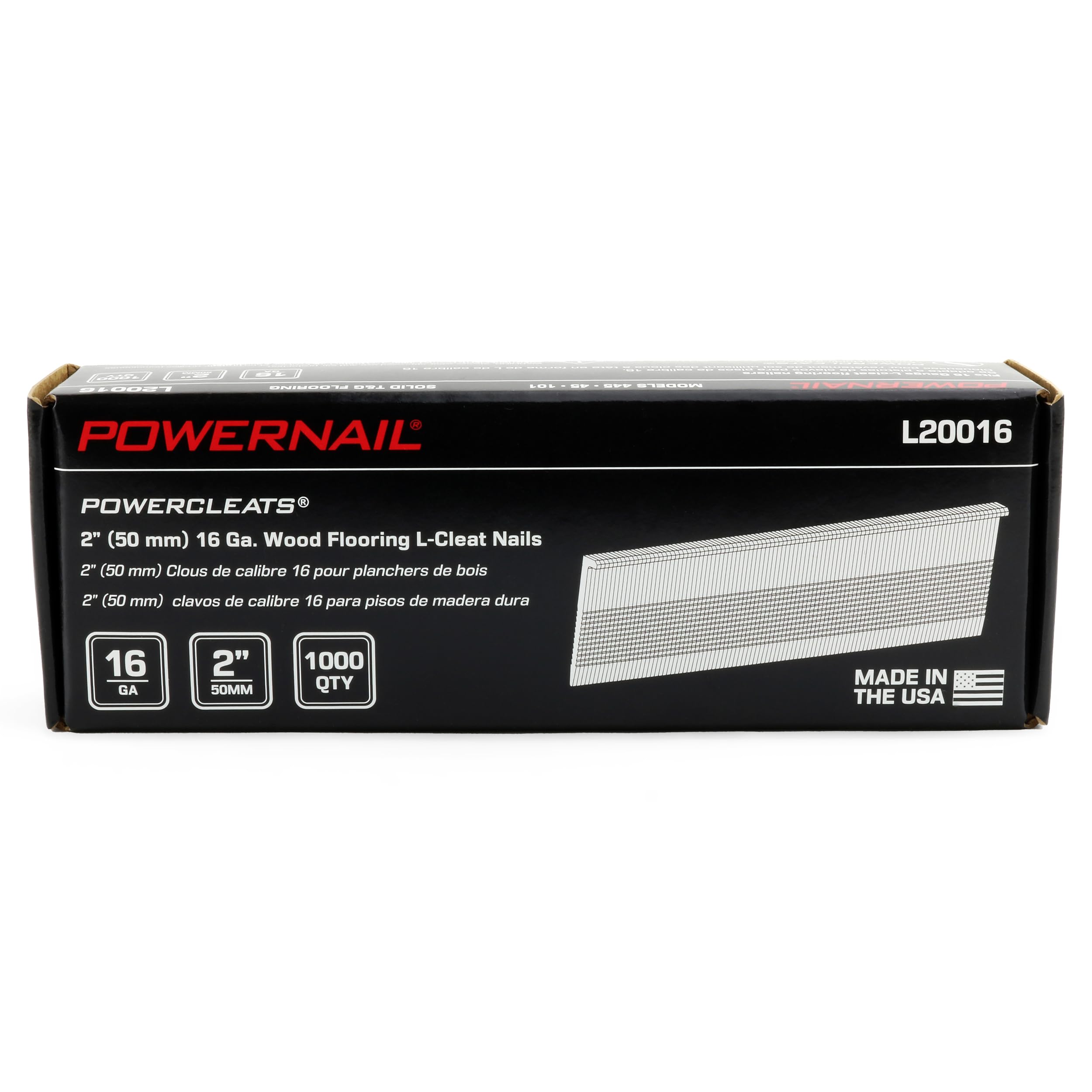 The Powernail L20016 16-Gauge 2-Inch Length L-Shaped Hardwood Flooring Cleats are designed to provide maximum holding power for the effective installation of tongue and groove hardwood flooring. The 16 gauge cleat was developed to install a wide variety of wood flooring thicknesses. Powernail’s flooring cleats are FHA and VA approved. Powercleats are superior quality L-style cleat nails designed to ensure trouble-free nailer operation and optimum construction results. Also available in various lengths.