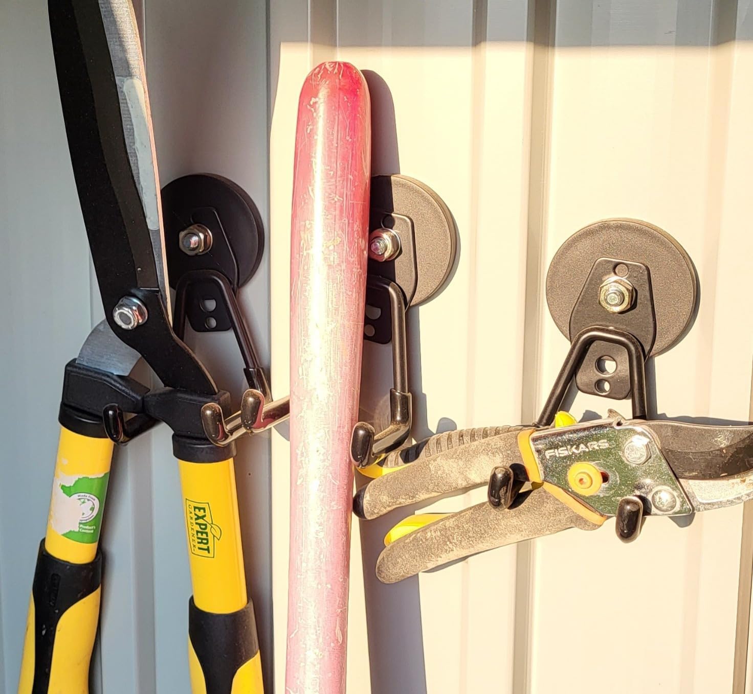 Attach these non-slip rubber-coated magnetic hooks to any metal surface to store tools securely where you need them. With 6 durable hooks, they are ideal for holding extension cords, gardening tools, and various power tools. Ensure a thickness of more than 1.2mm for secure magnetic hold.