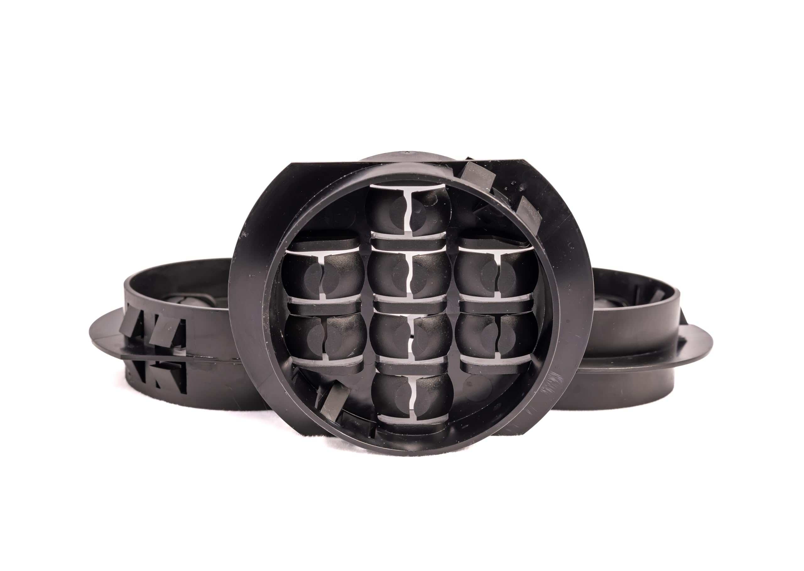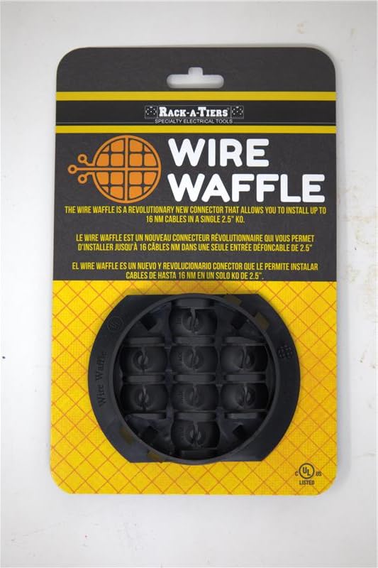 Wire Waffle – Multiple NM Cable Connector for 2.5″ KO’s. Connect up to 16 cables through a single knockout. Reduce labor time, wear on tools, panel upgrades made easier, and code compliance. Snap into panel knockout for easy installation. Perfect for panel changes without wall damage. See third picture for cable combinations.