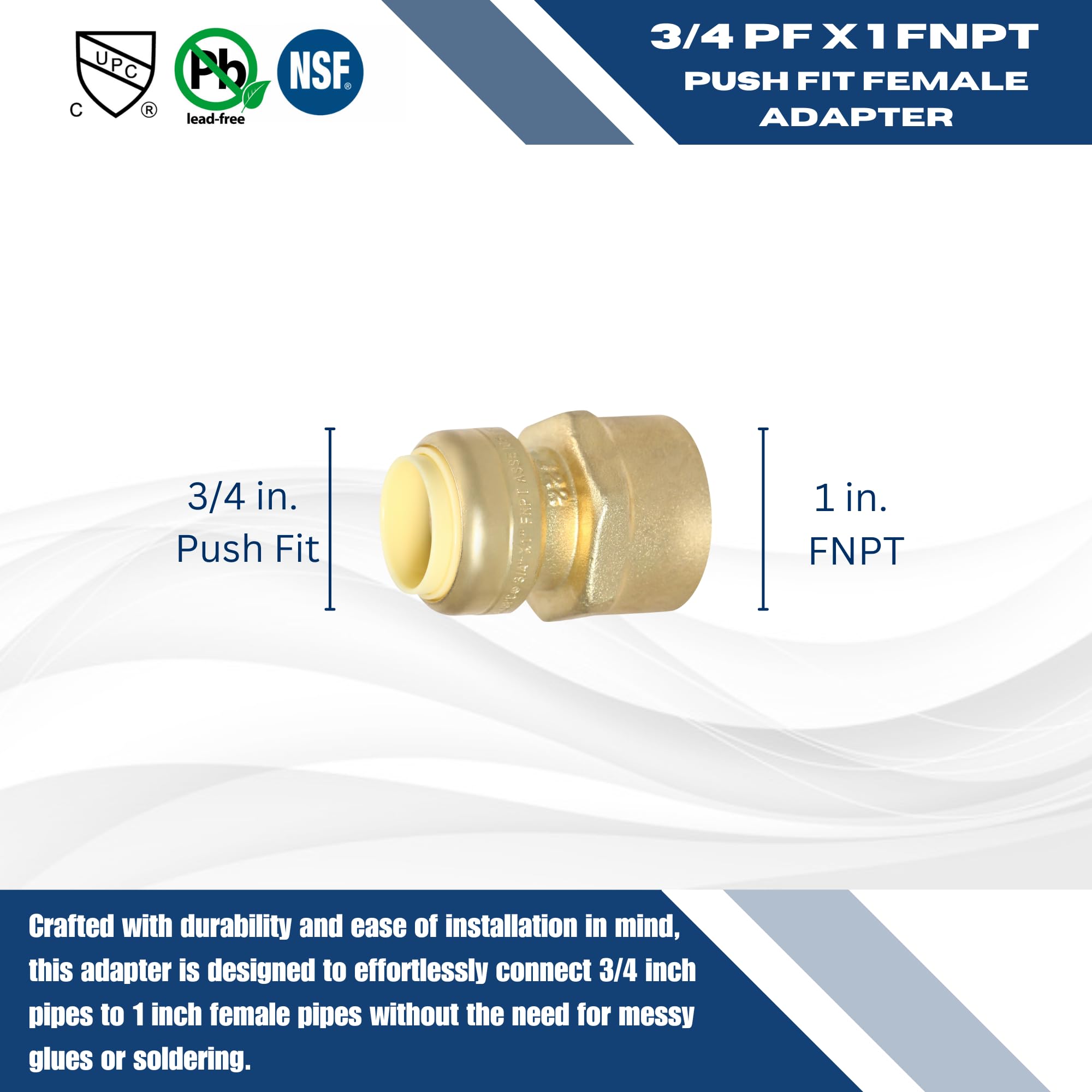 Push-Fit couplings join PEX tubing without tools. Elbows, Tees for bends, branches. No soldering or crimping needed.